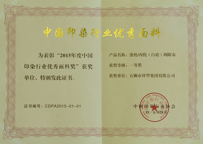 印染行業(yè)優(yōu)秀面料獎(jiǎng)一等獎(jiǎng)