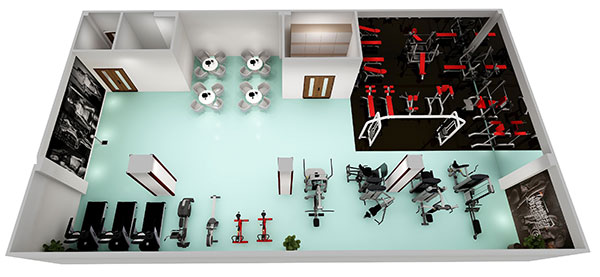 二是地面材料選擇。運動區(qū)域最好鋪設(shè)運動地膠,不僅防滑,而且更具運動彈性。自由力量區(qū)域(放置啞鈴和杠鈴片的區(qū)域)最好鋪設(shè)減震地墊,放置劇烈運動的時候地面被突然放下的啞鈴或杠鈴片砸壞。
