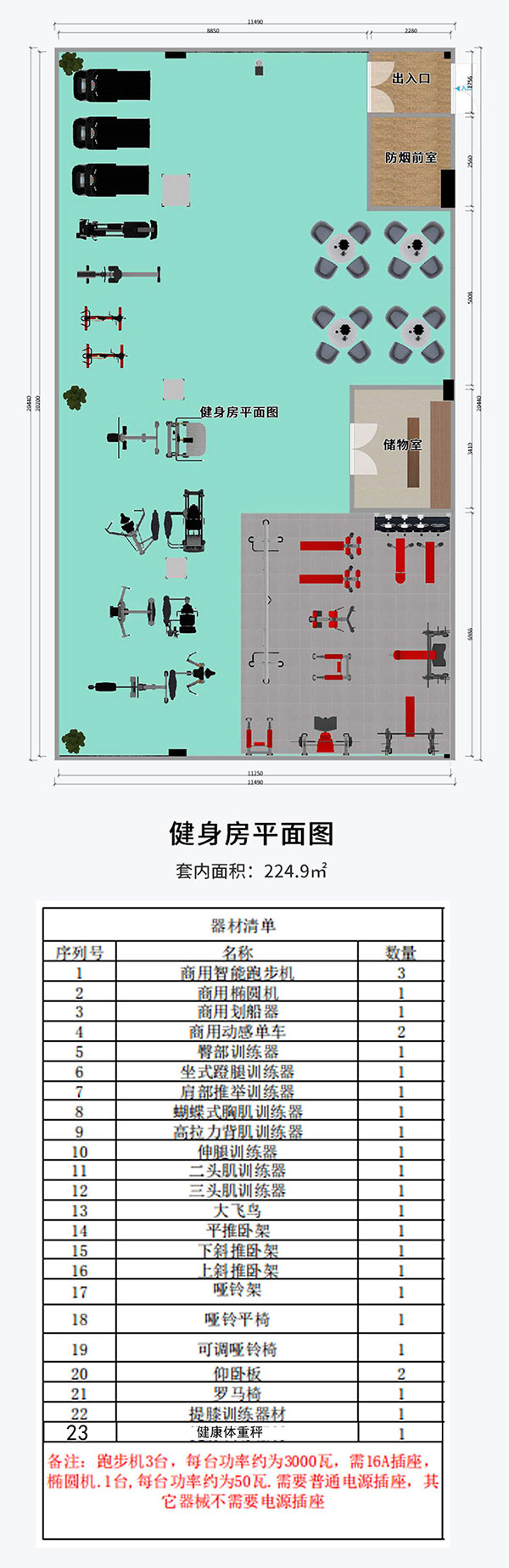 220平方健身房